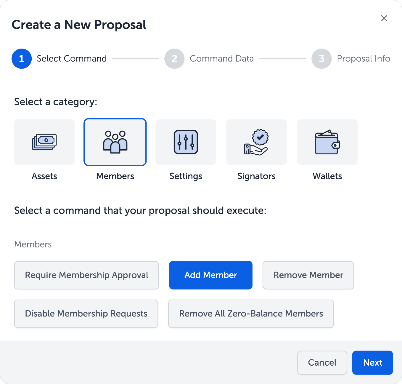 Proposals are one of the core governance tools on Upstream. Using this tool, your DAO can execute 20+ different commands, from adding new members to sending ETH to a wallet. Creating proposals is an easy, step-by-step process that will be used to take action on anything needed on your DAO.